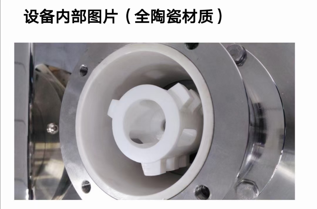 5. 腔體和砂磨(mó)盤采用高耐磨合金或(huò)者氧化鋯(gào)陶瓷材料,耐磨性強,不生鏽,無汙(wū)染。